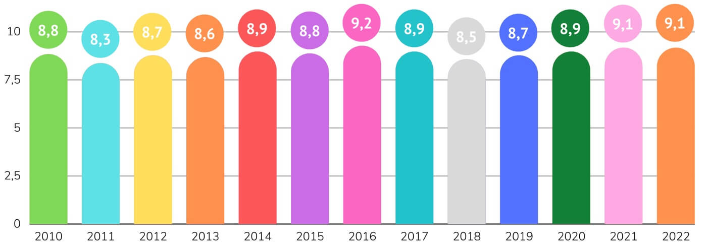 Nuestros alumnos obtienen las notas más altas en selectividad EBAU. Veánse los resultados de las notas medias de la totalidad de alumnos de las 12 últimas promociones de 2º Bachillerato: